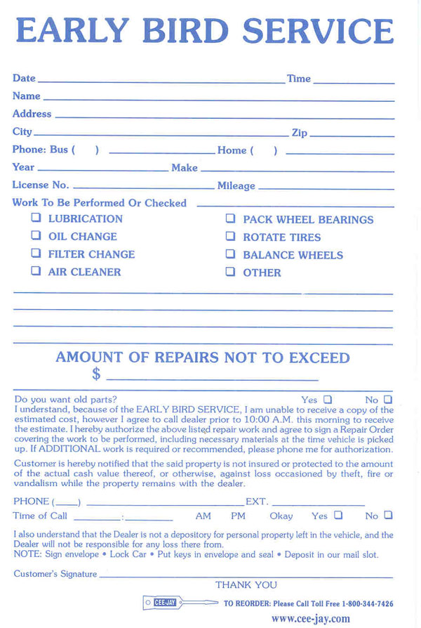 click for: Early Bird Service Form